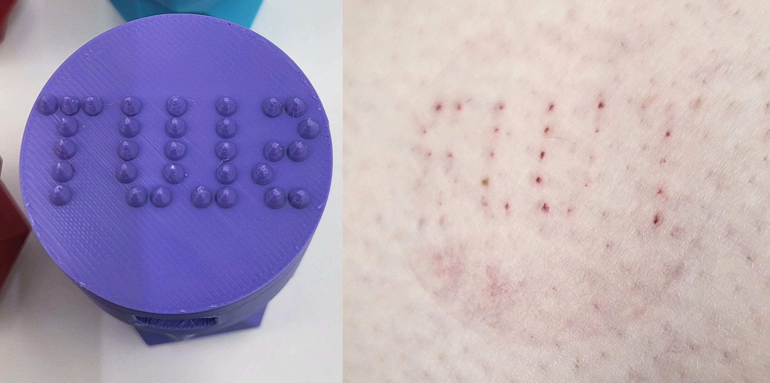 The marks are unique and nicely defined. This should not break the skin so can be used harder than the pointy spike versions.