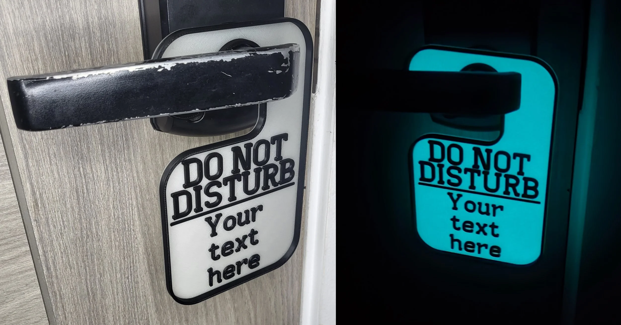 These do not disturb signs are fully personalizable with whatever text you want and that fits.The base, text and line can all be different colors. 4 colors total maximum.