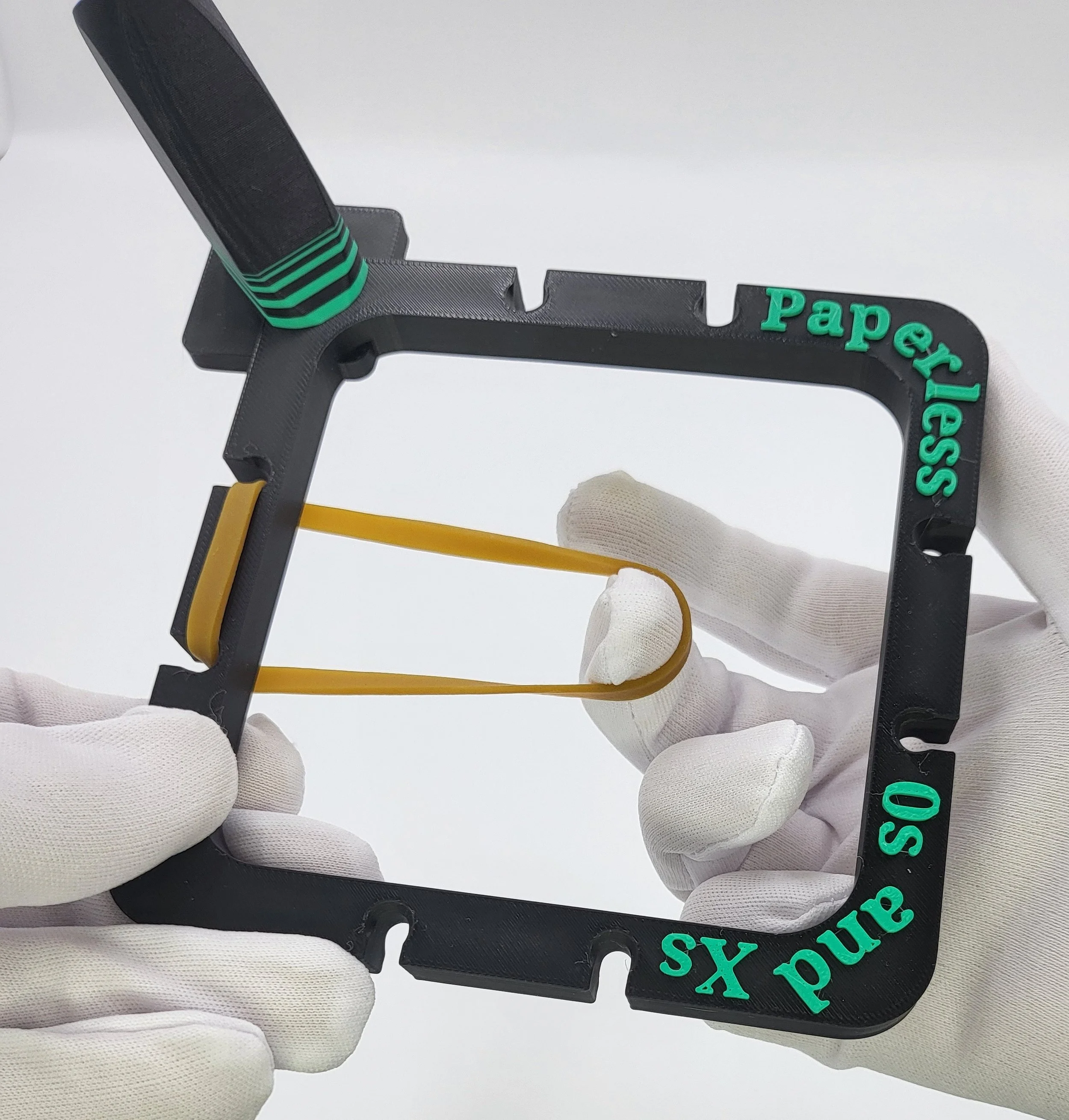For this you will need a wire/plastic food tie.#, 2 bands, the O hammer and the O frame.