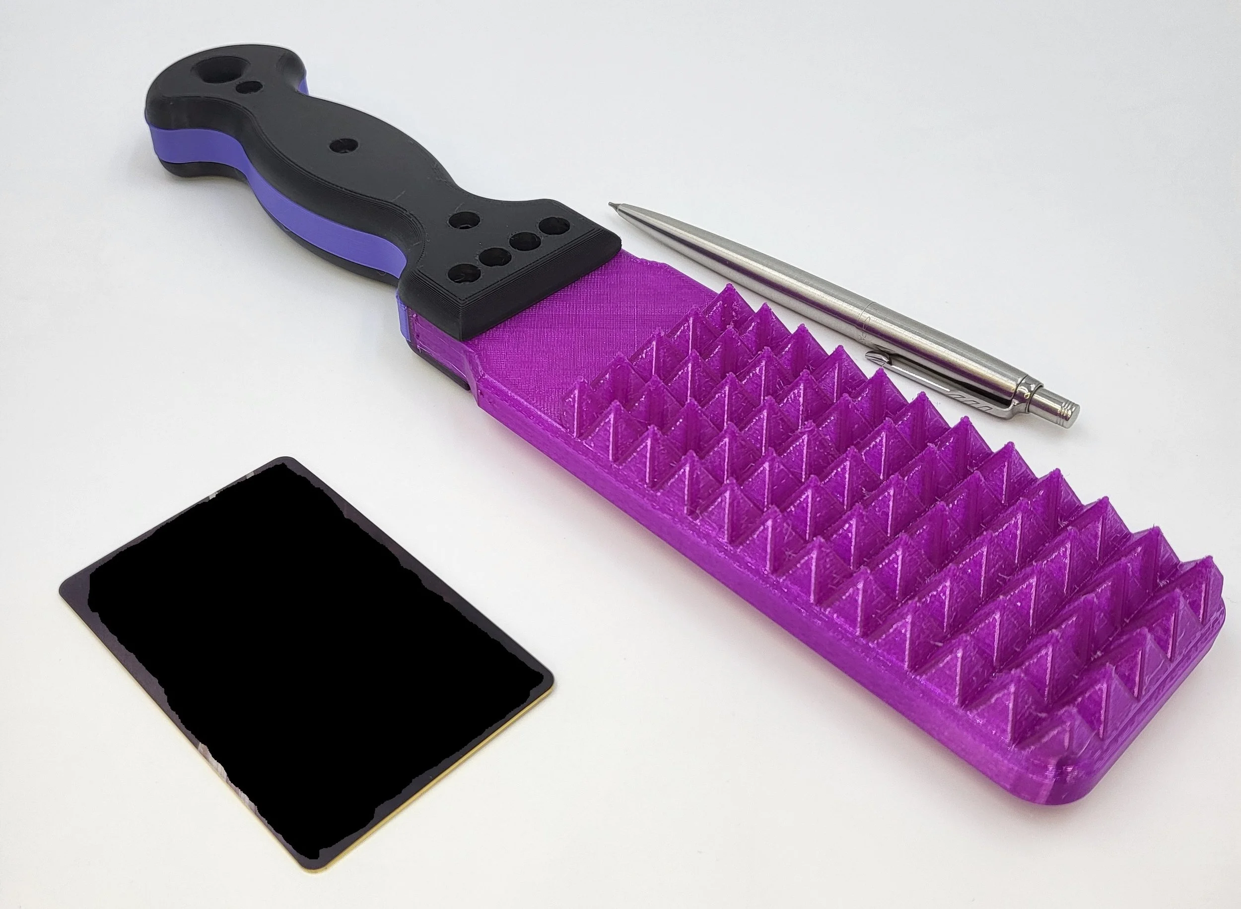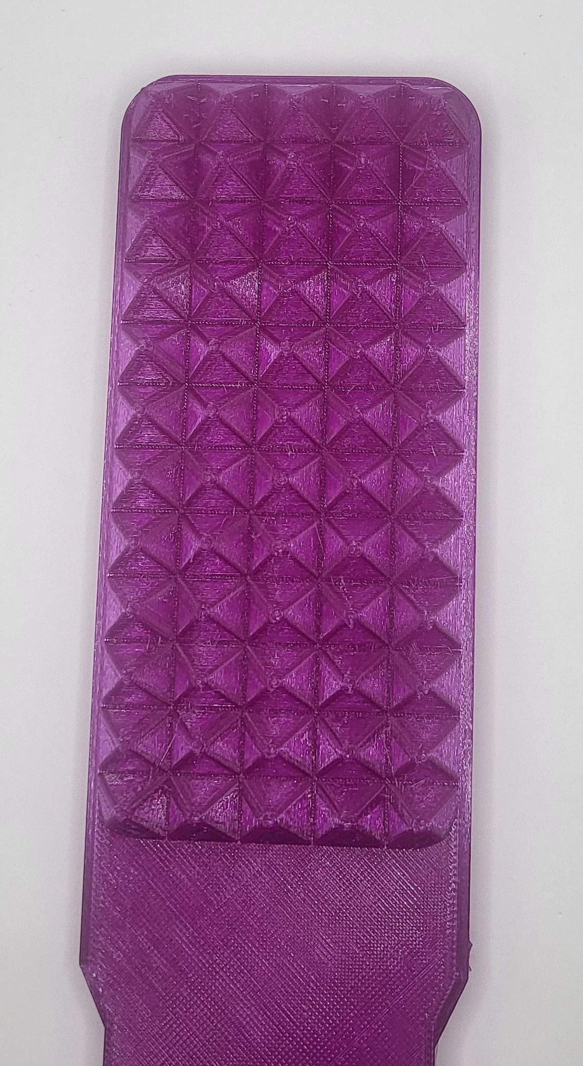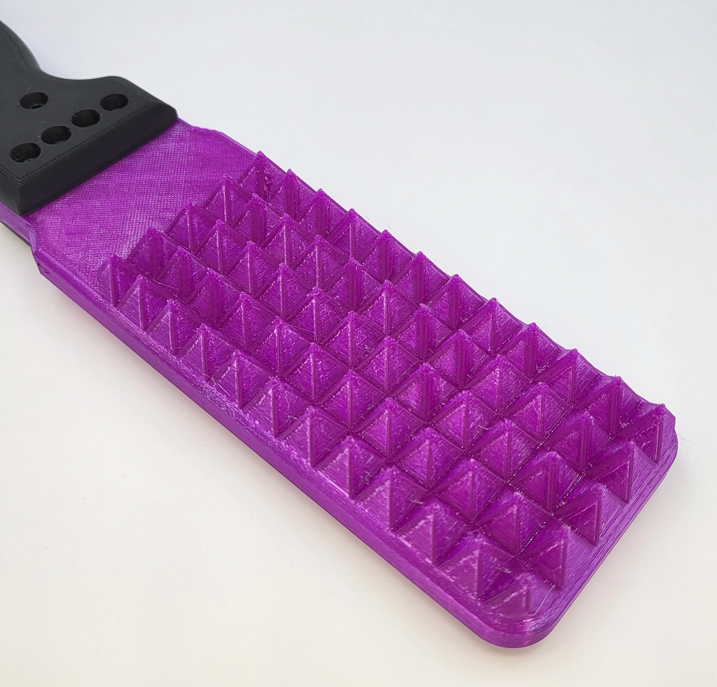 The flat side is a nice simple thuddy spanking device, flipping it over to the spikey side will leave a very definite mark and will very painful and should be used with extreme caution.