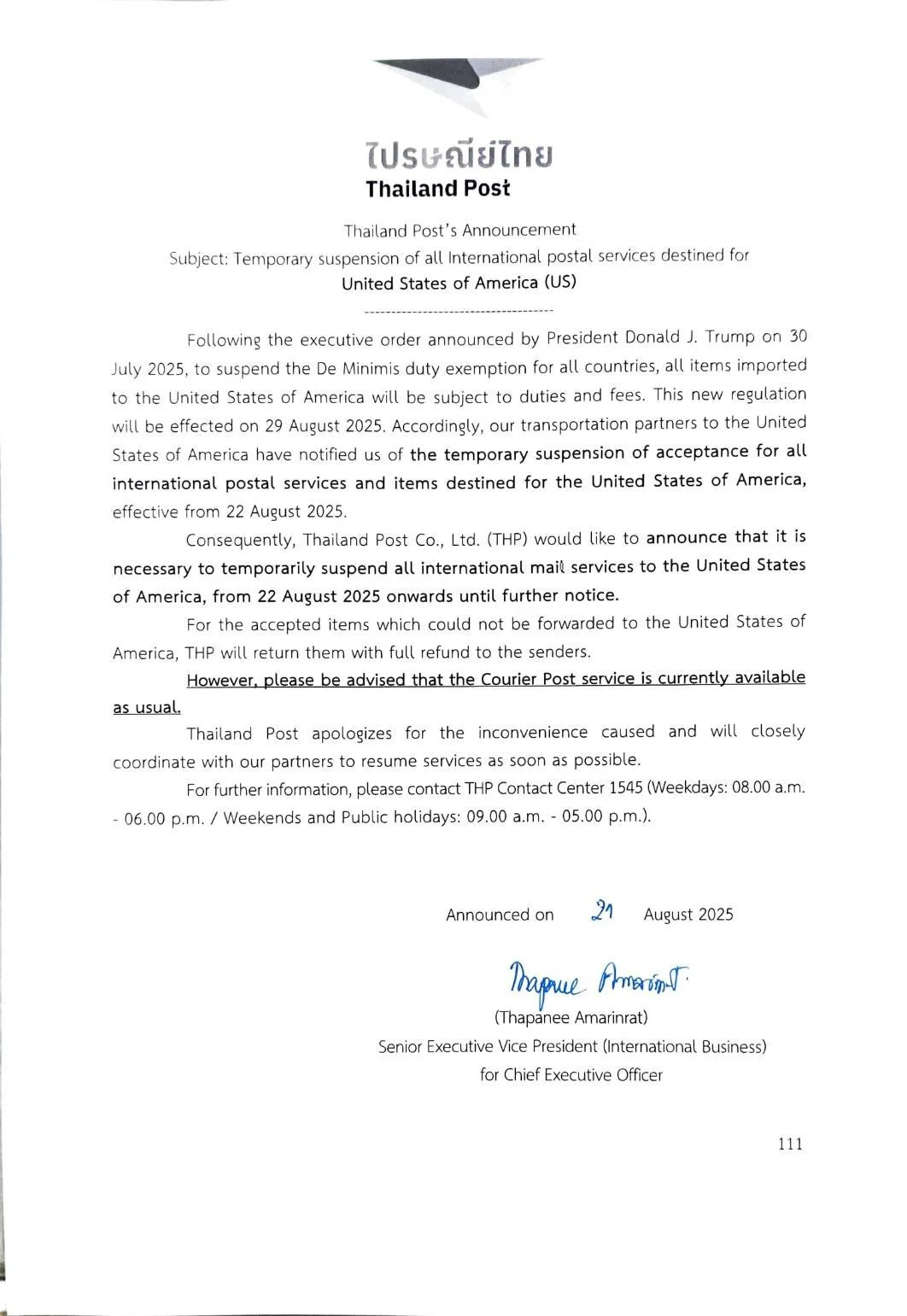Currently I advise customers in the USA to wait to buy my products until Thailand Post resume service to the USA. This situation can not last long.